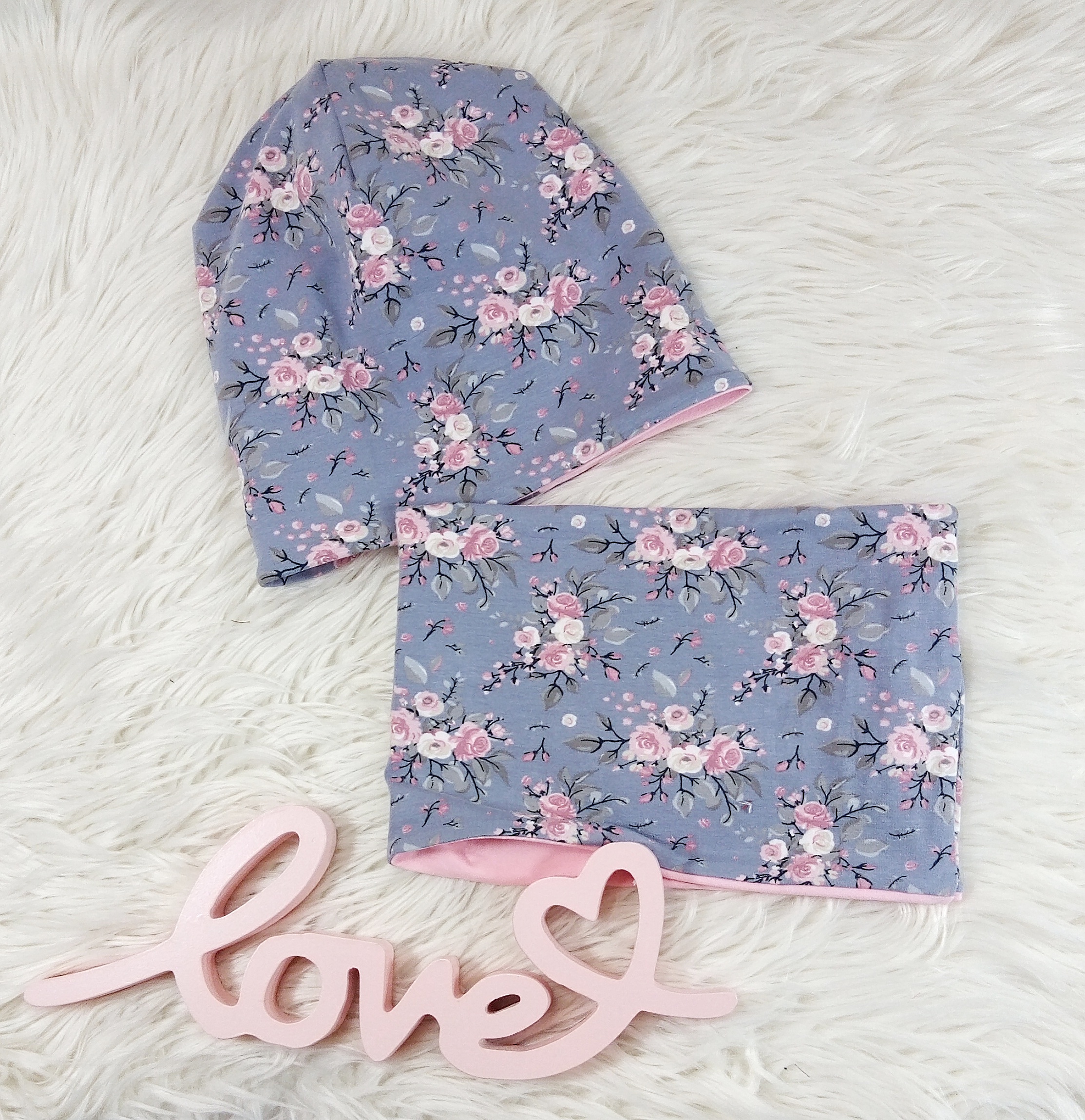 Die Mütze und der Loopschal sind beide jeweils aus 2 Lagen Jersey hergestellt. Dadurch eignen sie sich super für die Übergangszeit.