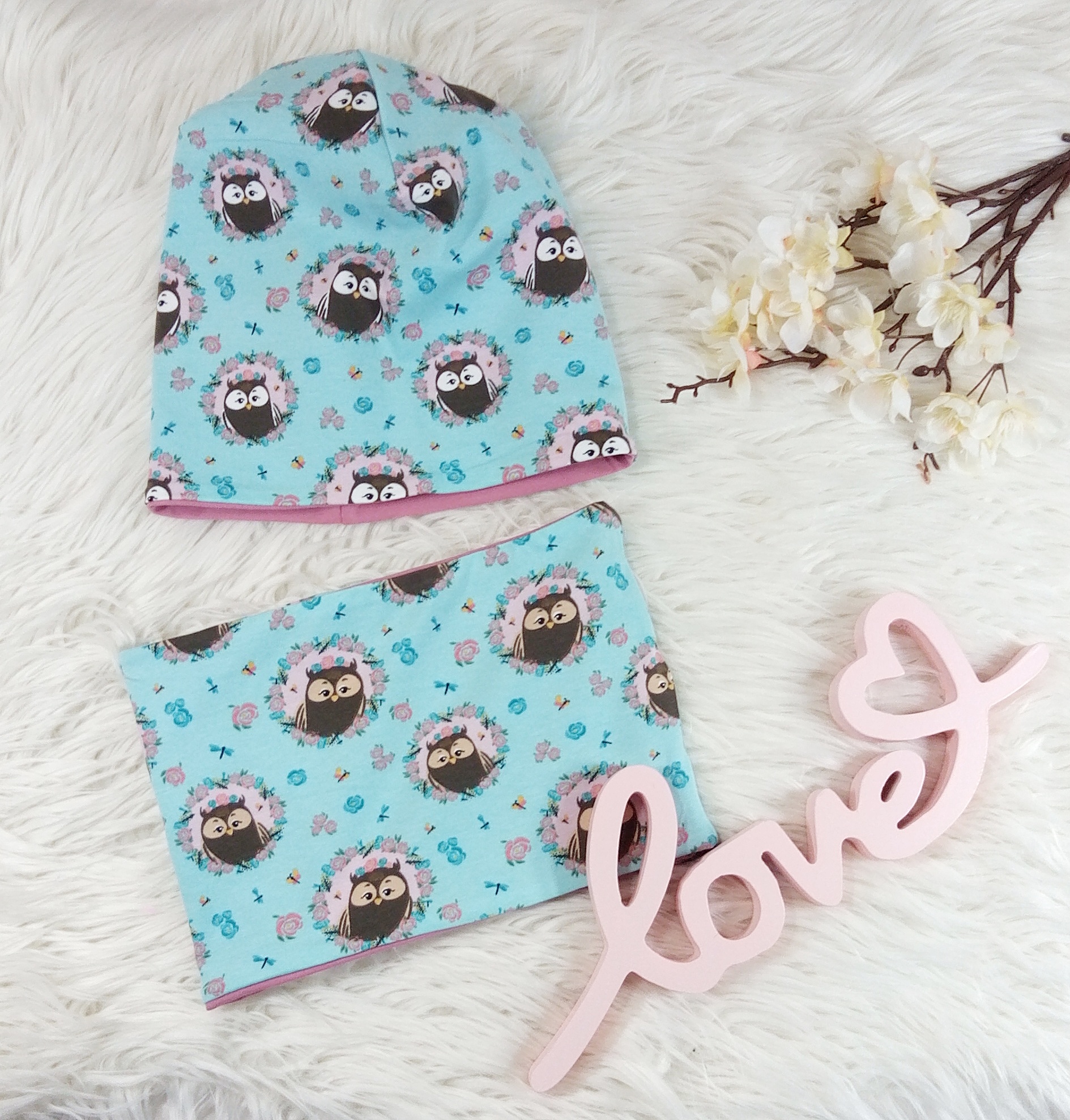 Die Mütze und der Loopschal sind beide jeweils aus 2 Lagen Jersey hergestellt. Dadurch eignen sie sich super für die Übergangszeit.