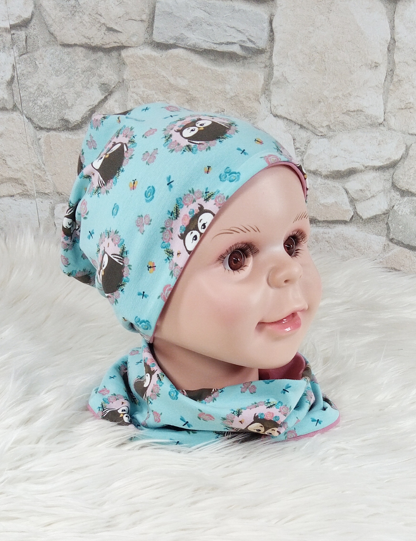 Beanie und Loopschal aus zwei Lagen Jersey.