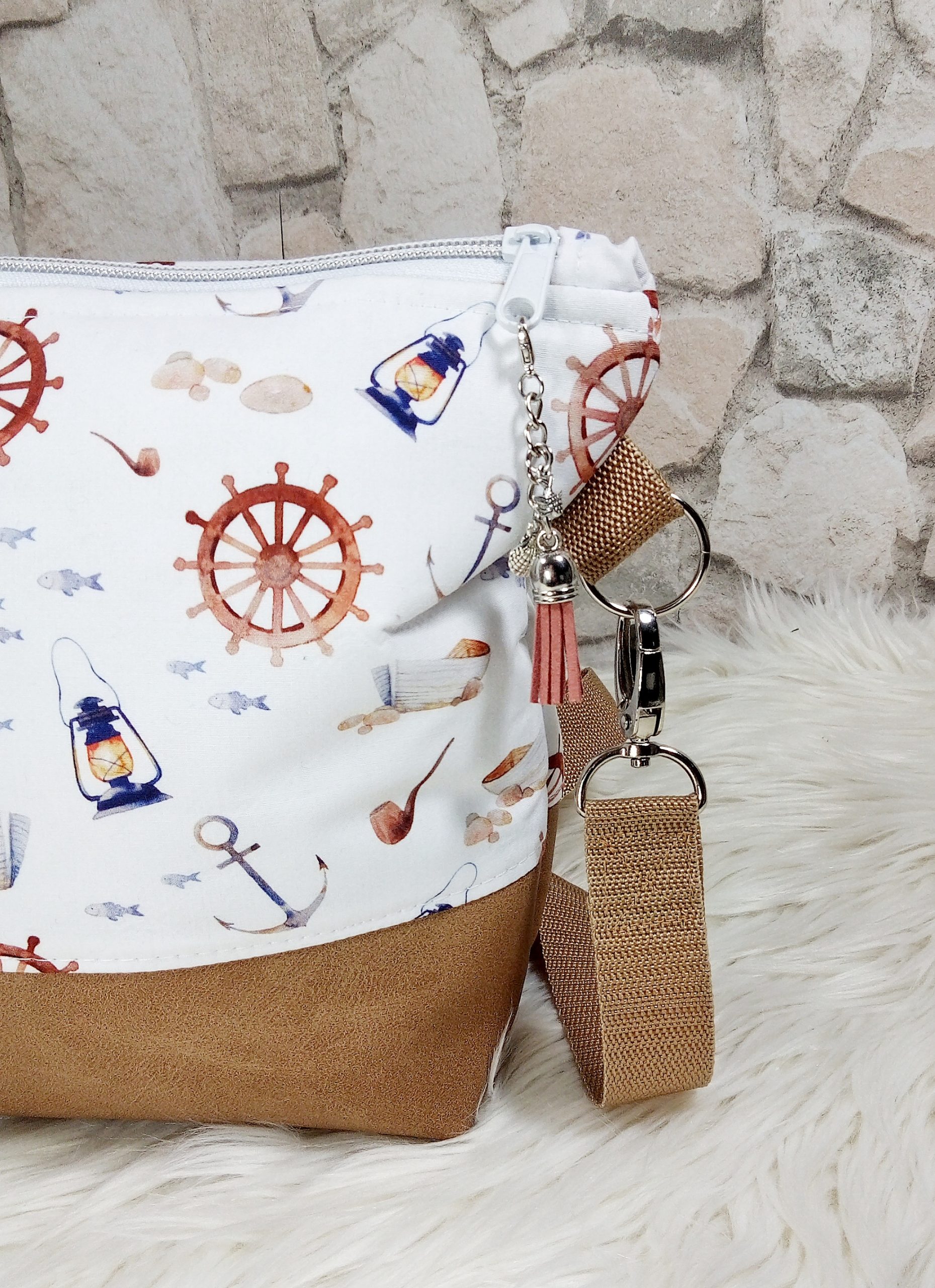 Die Tasche wurde außen aus Kunstleder und Baumwolle hergestellt.