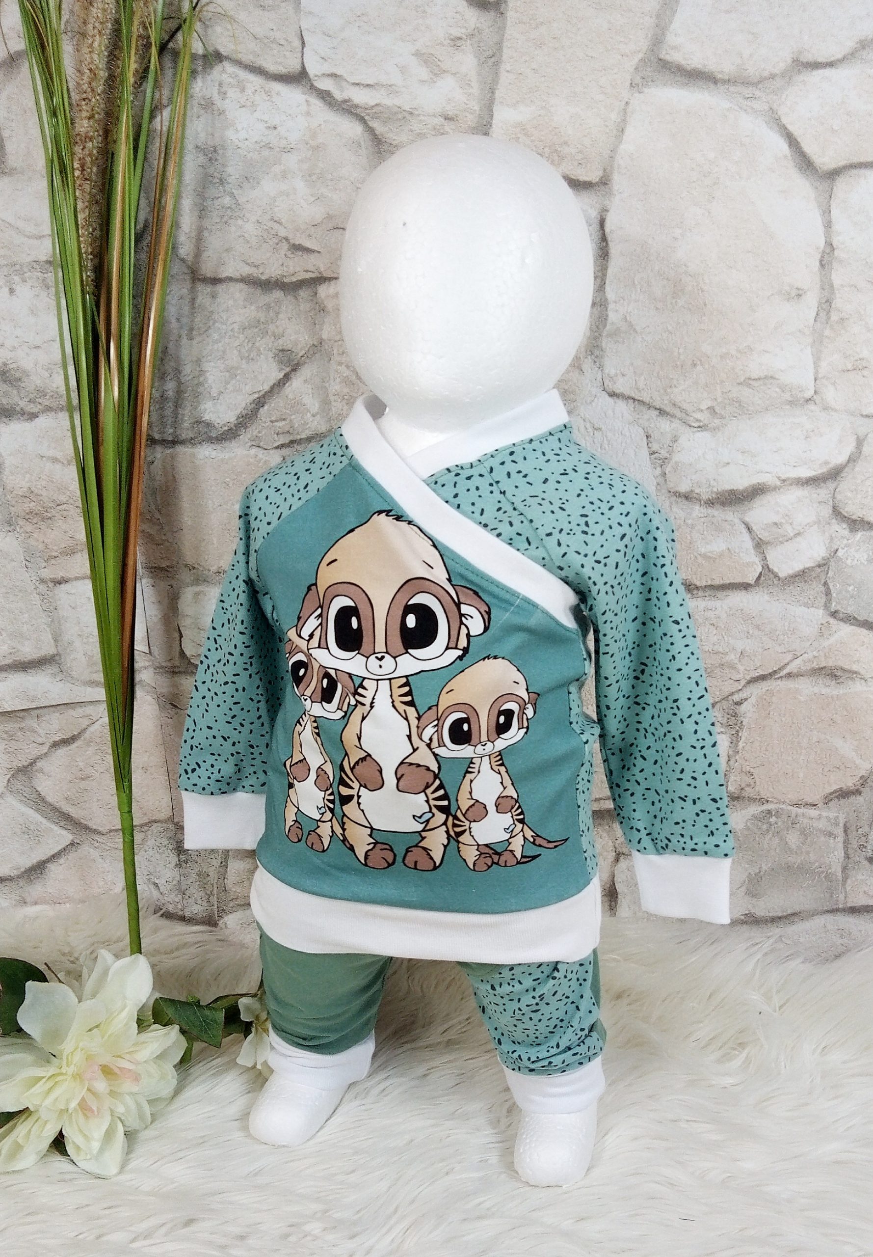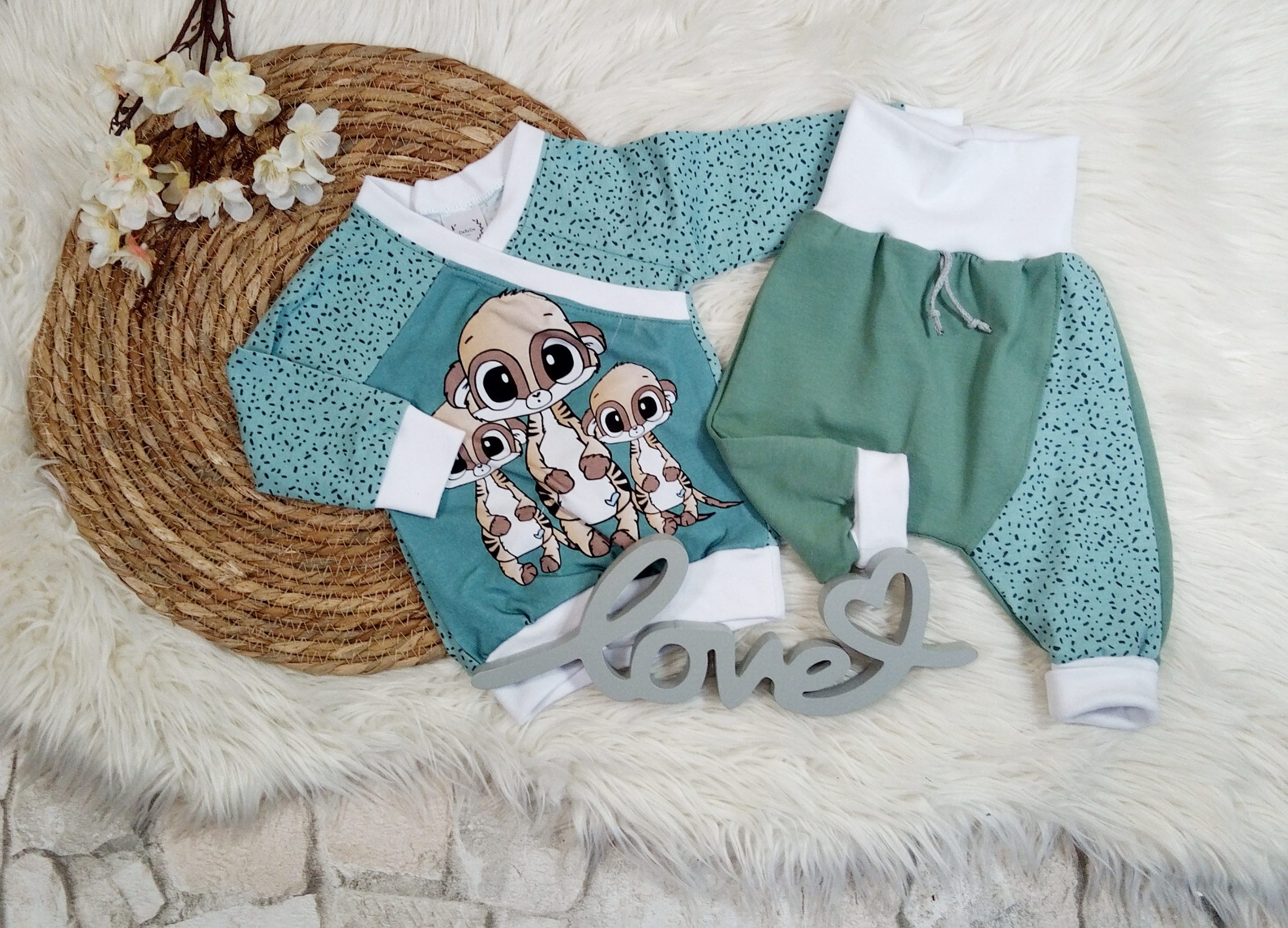 Das Set besteht aus einer Hose und dem passenden Pullover dazu. Der praktische Halsausschnitt lässt sich ganz einfach über den Kopf des Babys ziehen und erleichtert so das An- und Ausziehen.