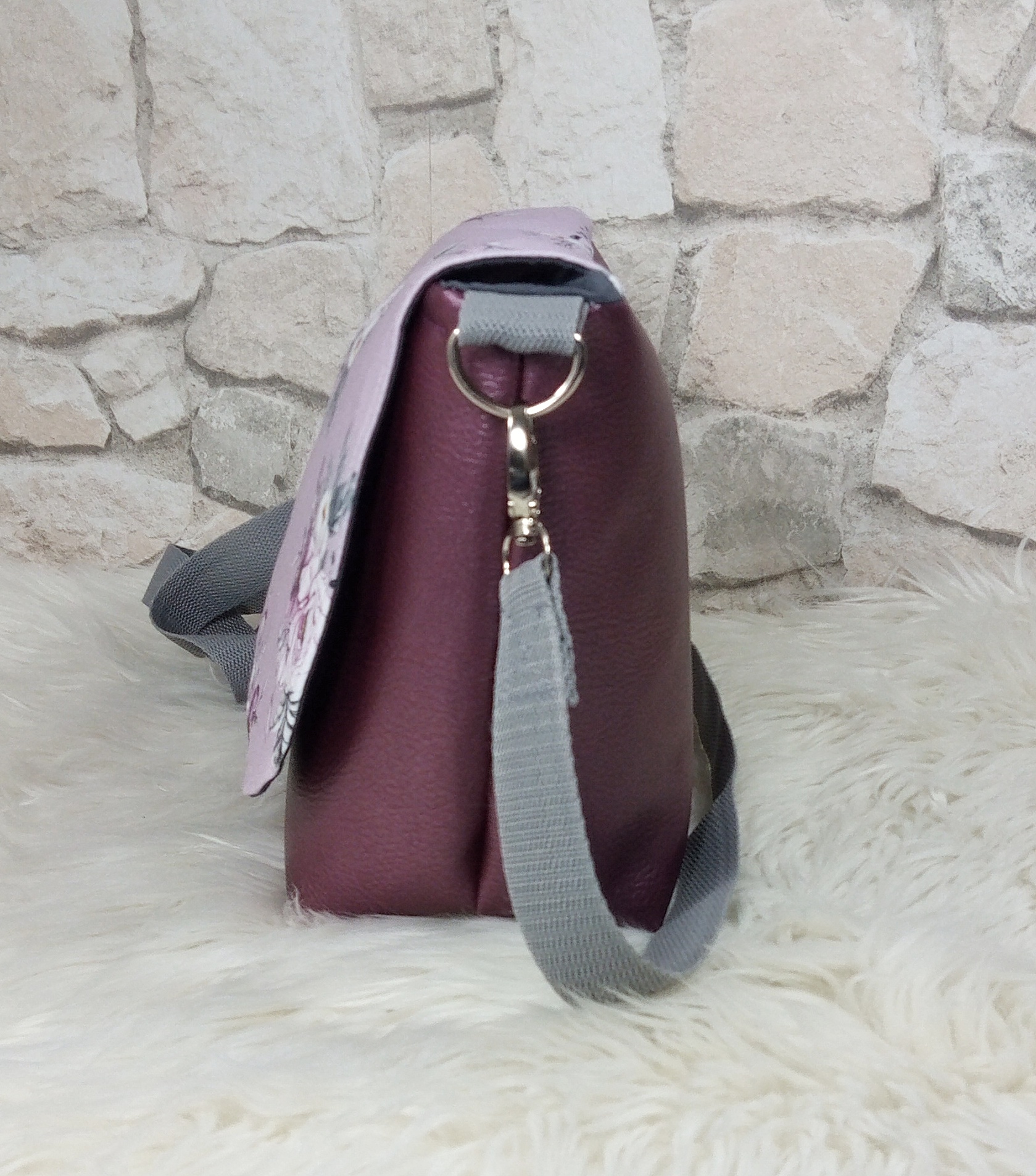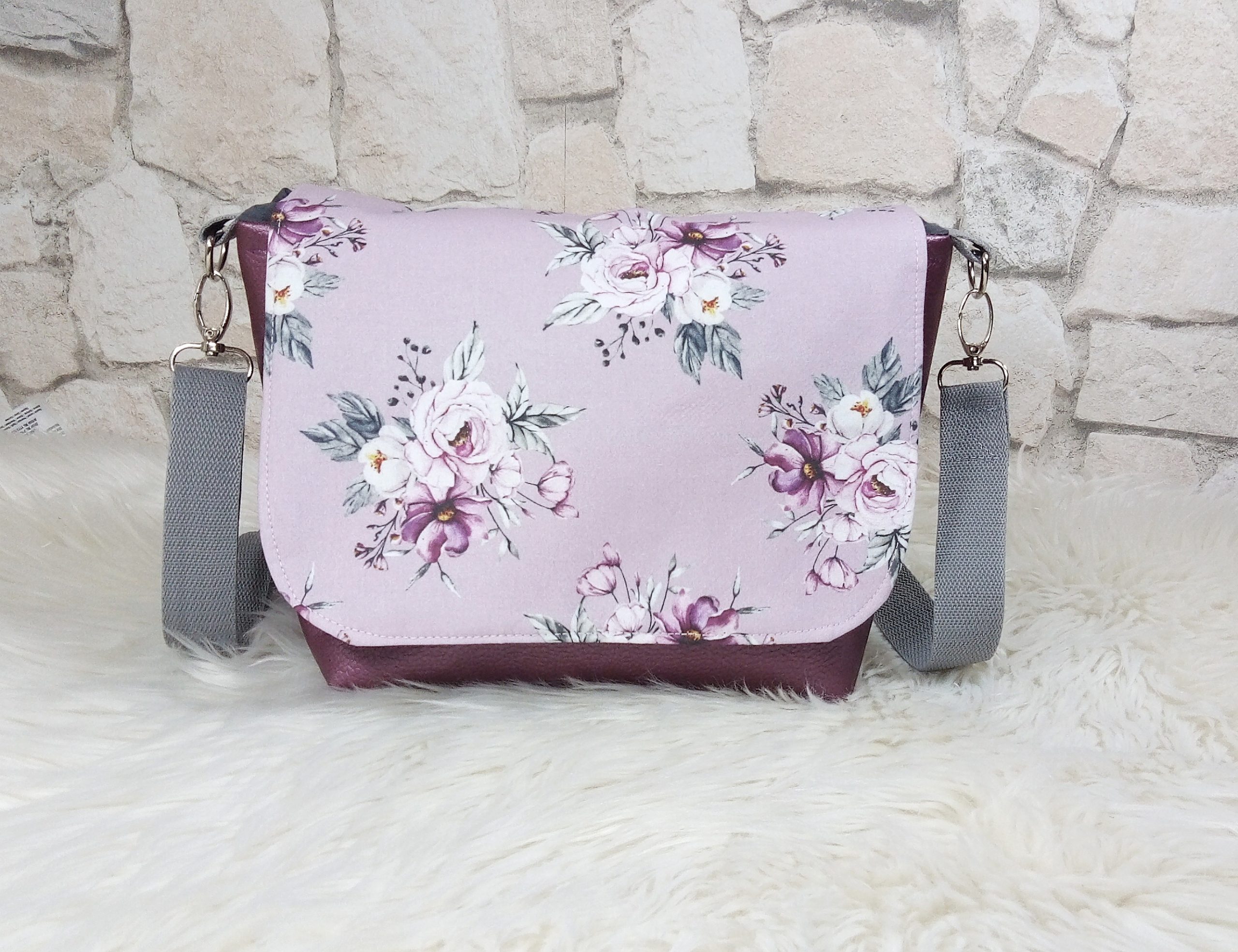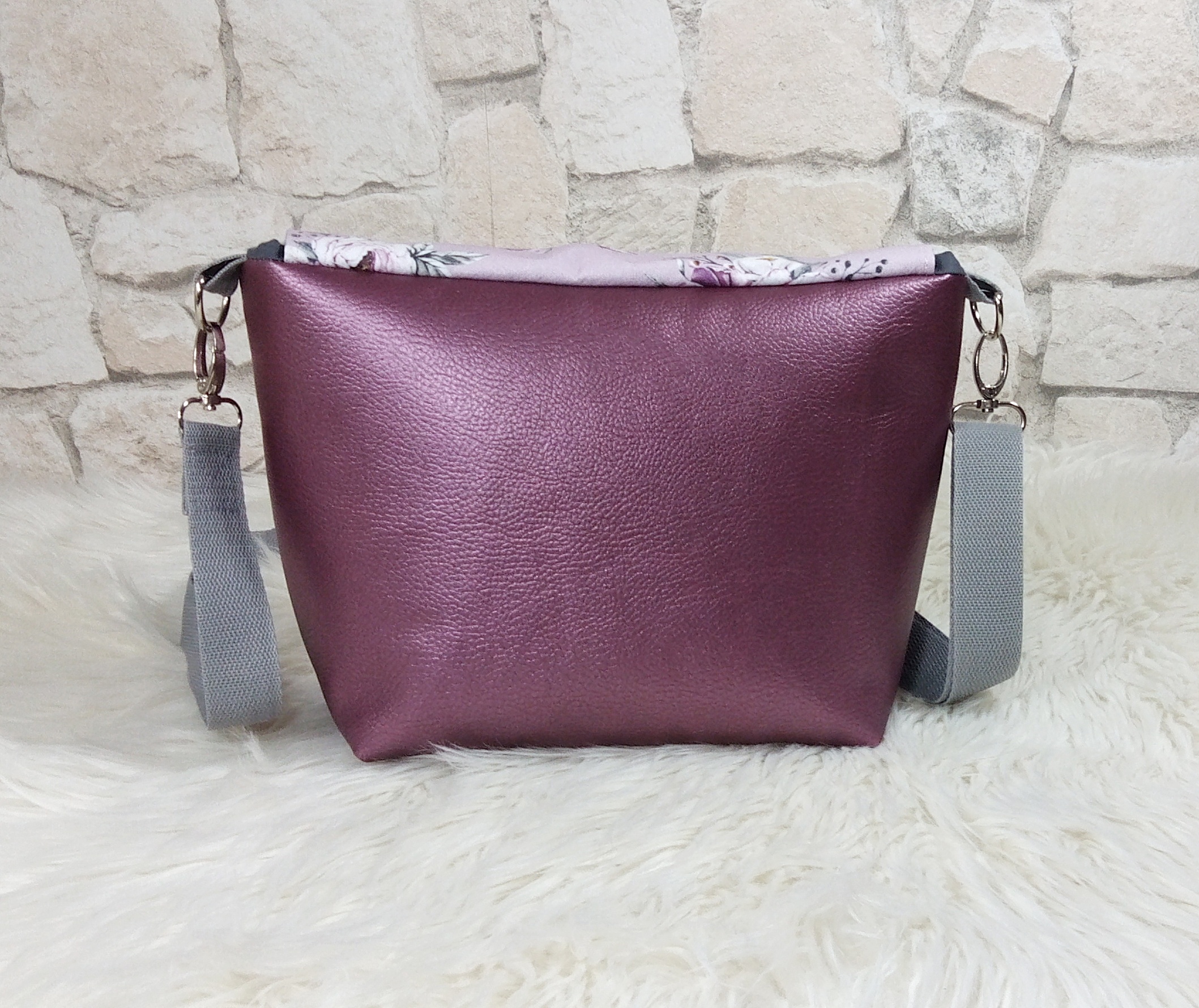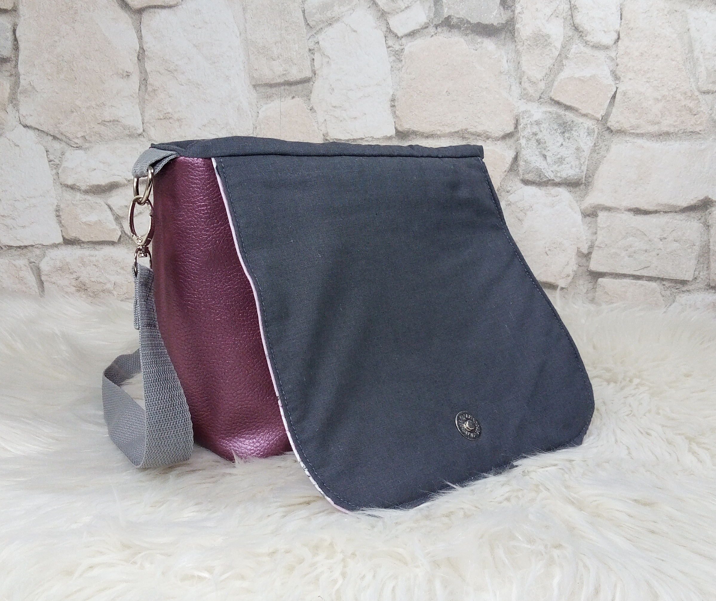Die Tasche wurde aus Baumwolle und Kunstleder hergestellt. Verstärkt wurde sie mit einem Vlies aus Polyester, damit sie auch mit wenig Inhalt gut aussieht und Stand hat.